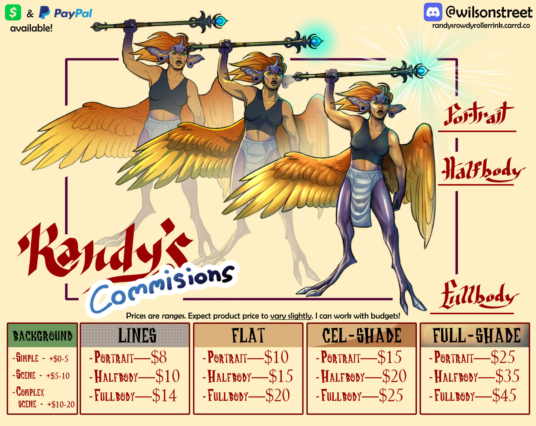 - Fullbody—$45 USDBackgrounds